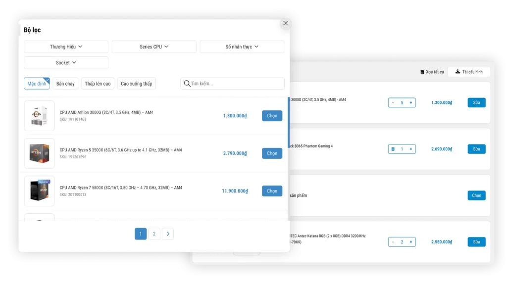 Giao diện lựa chọn sản phẩm build tối ưu hiển thị trên cả PC và mobile…