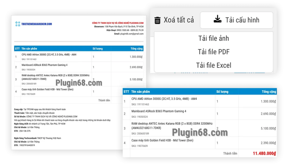 Plugin hỗ trợ xuất file báo giá: Image, PDF, Excel.