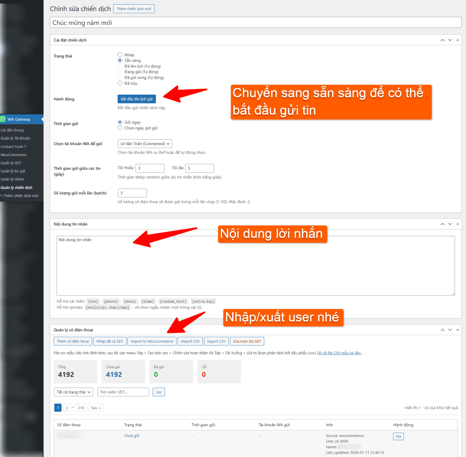 ✅ CHIẾN DỊCH: Tạo và quản lý chiến dịch gửi tin nhắn hàng loạt
