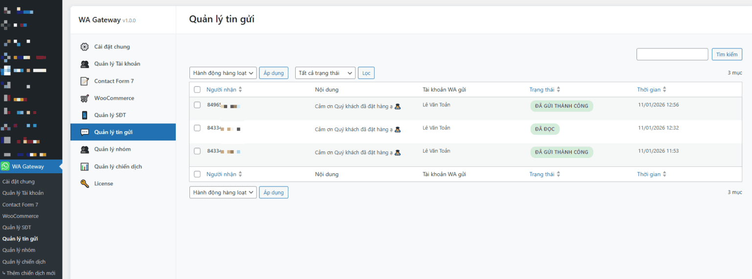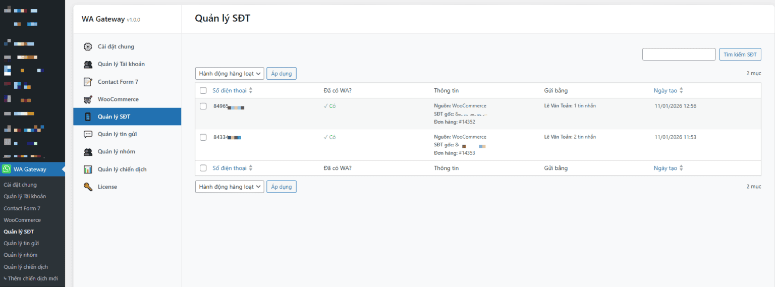 Lưu tất cả các sđt đã gửi từ web đến WA. Để phục vụ sau này có thể gửi cho toàn bộ sdt.