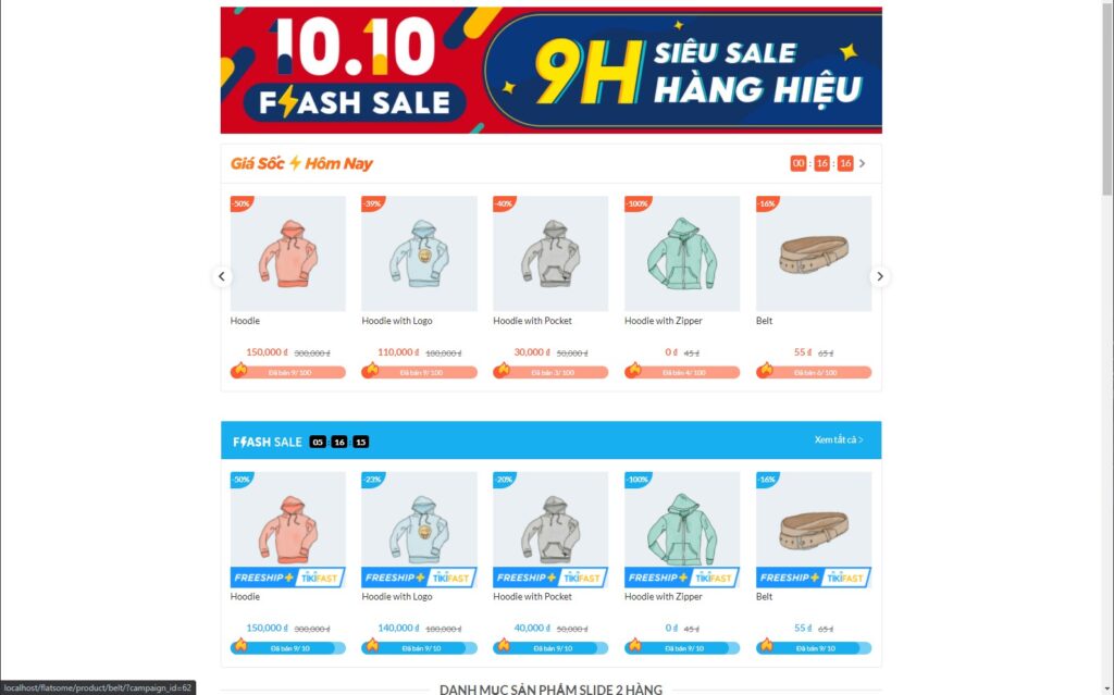 - Hiển thị thanh Flashsale trong trang chi tiết sản phẩm, Giỏ hàng, Trang thanh toán khi sản phẩm được thêm vào giỏ hàng