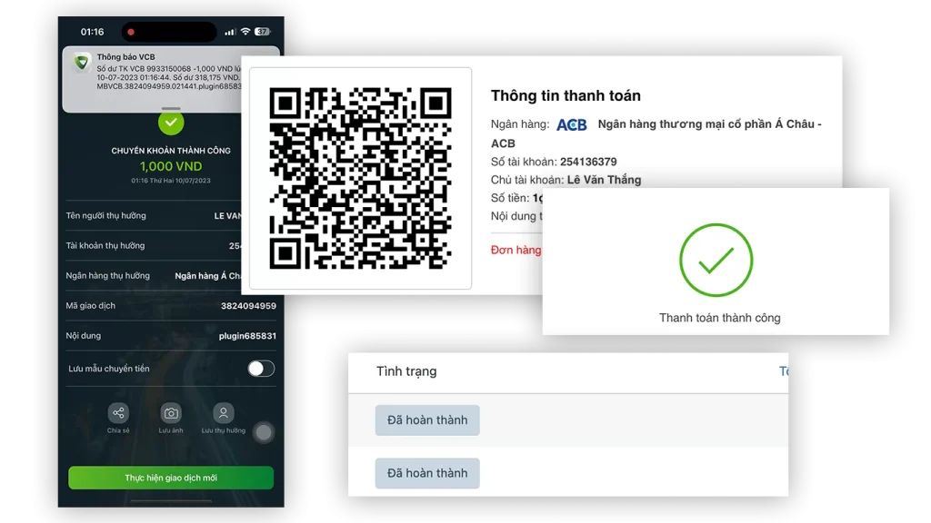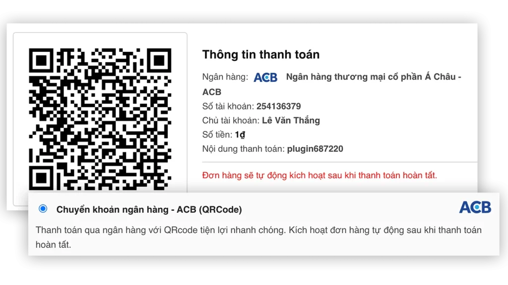 Plugin sẽ giúp khách hàng của bạn chuyển khoản qua cổng ACB của bạn.