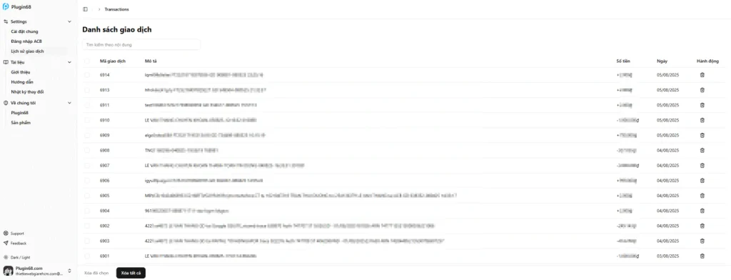 Dễ dàng quản lý và xem các giao dịch gần nhất ngay trên website.