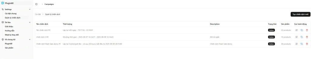 • Dễ dàng tạo, xoá và bật/tắt các chiến dịch Flash Sale.