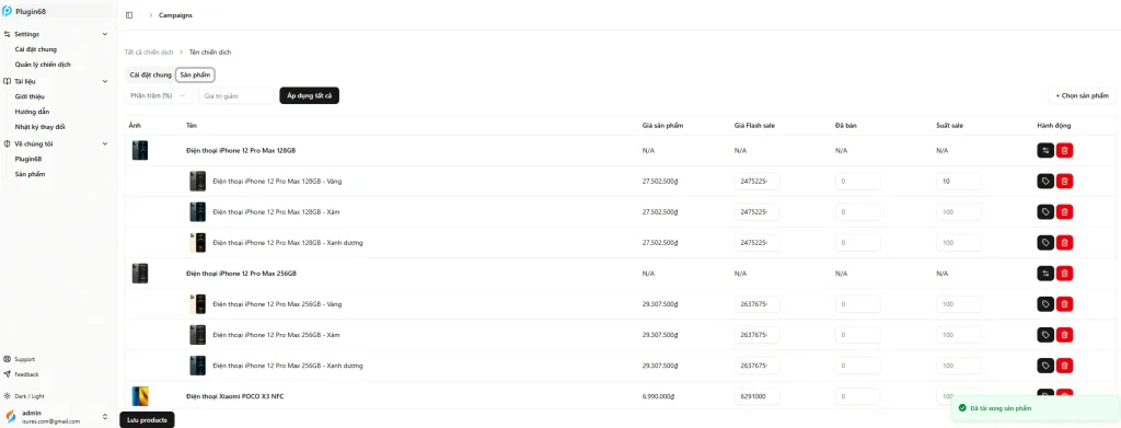 • Cho phép bạn đặt giới hạn suất sale cho từng sản phẩm và biến thể. Khi hết giới hạn suất sale, giá sẽ trở lại bình thường.