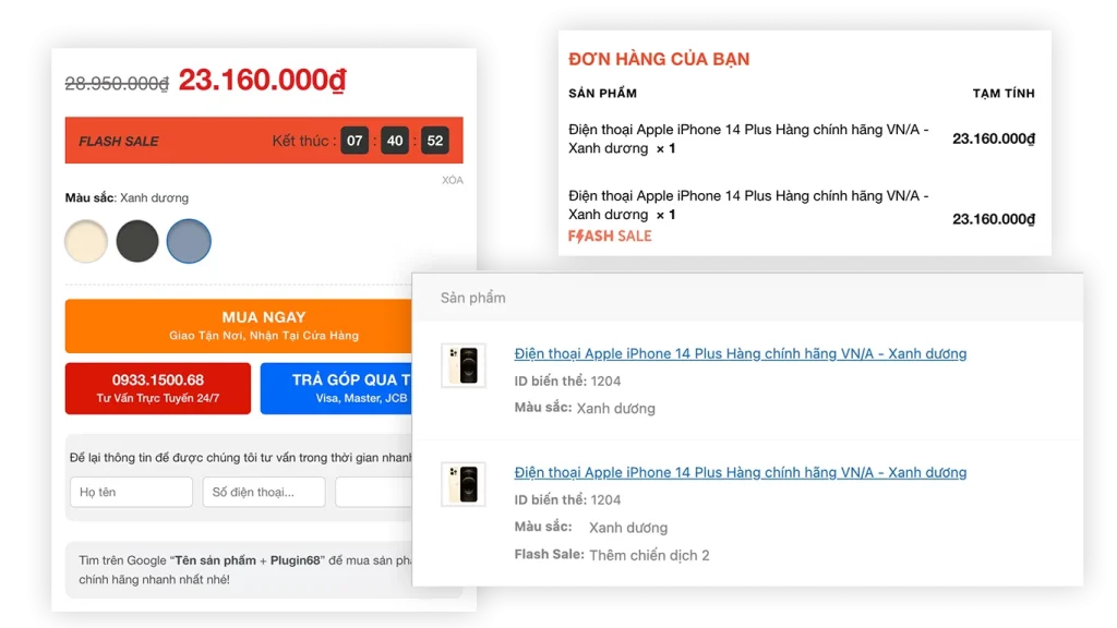 Khách hàng có thể mua với giá Flash Sale, đồng thời thông tin đơn hàng sẽ phân loại sản phẩm này được mua ở chiến dịch nào.
