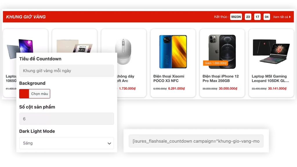• Sử dụng shortcode để hiển thị chiến dịch Flash Sale hoặc danh sách sản phẩm đang khuyến mãi.