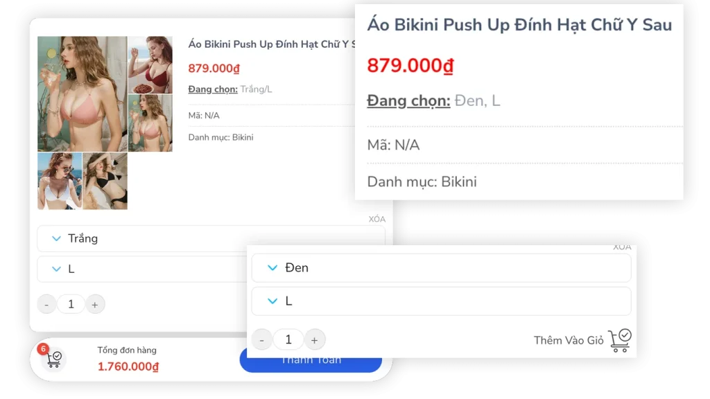 Dễ dàng lựa chọn các biến thể sản phẩm, và số lượng.