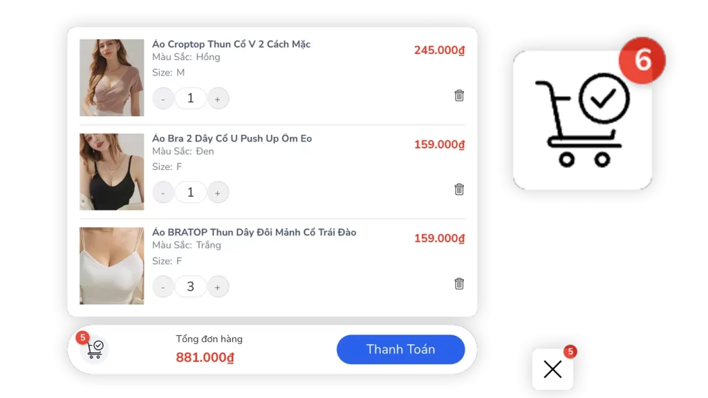 Mini cart, xem và chỉnh sửa giỏ hàng trực tiếp