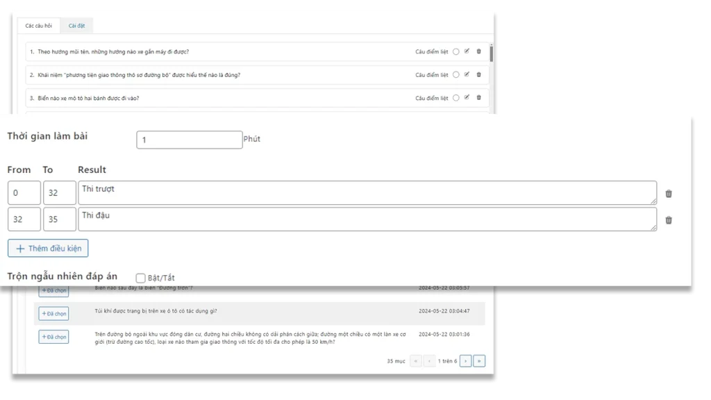Có thể set rules chấm điểm ví dụ đúng từ 0 – 10 câu : thi trượt, 10-20 câu: thi đạt