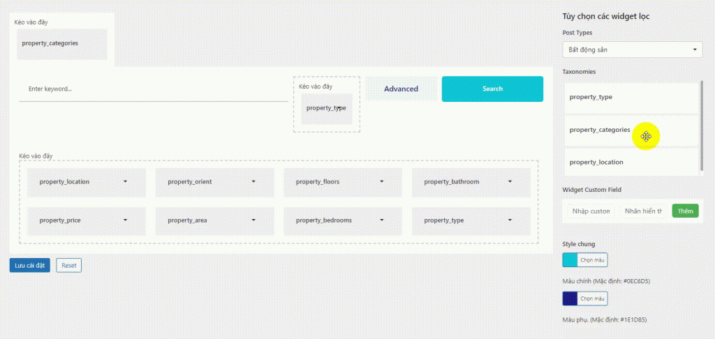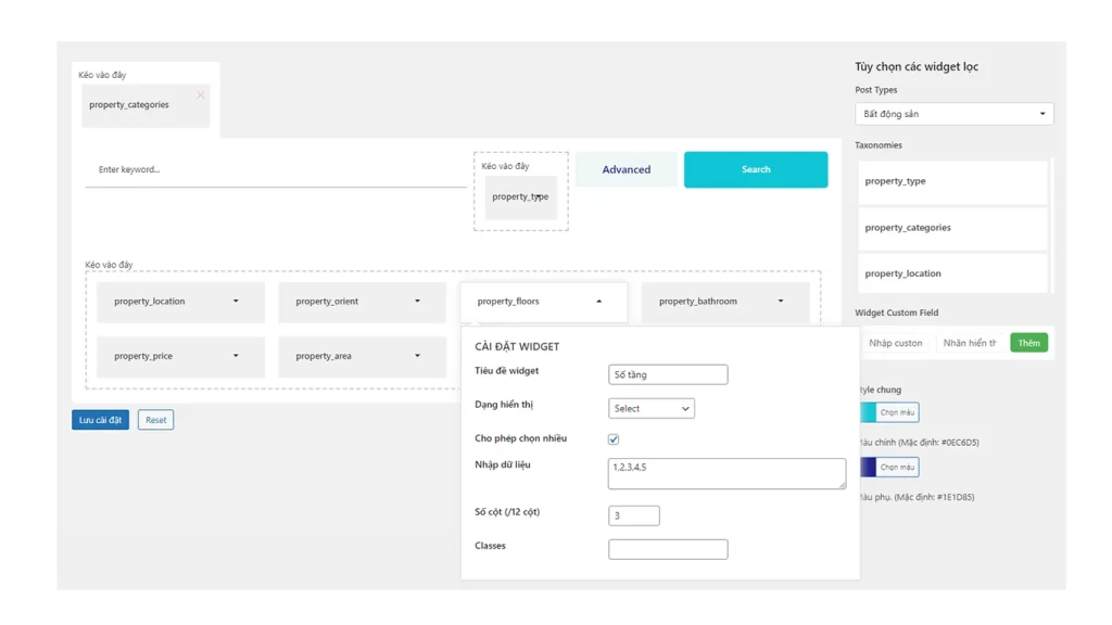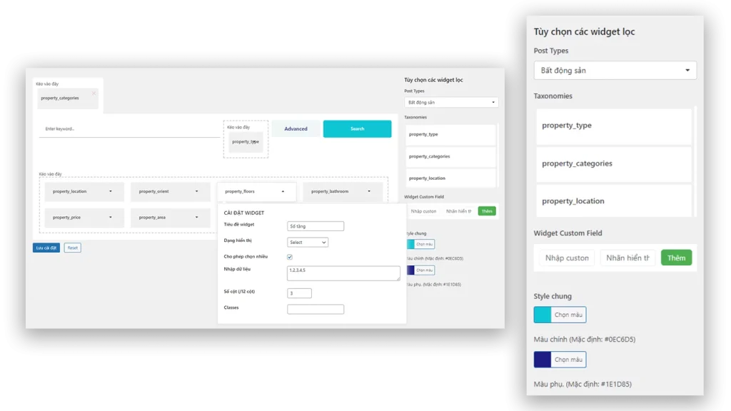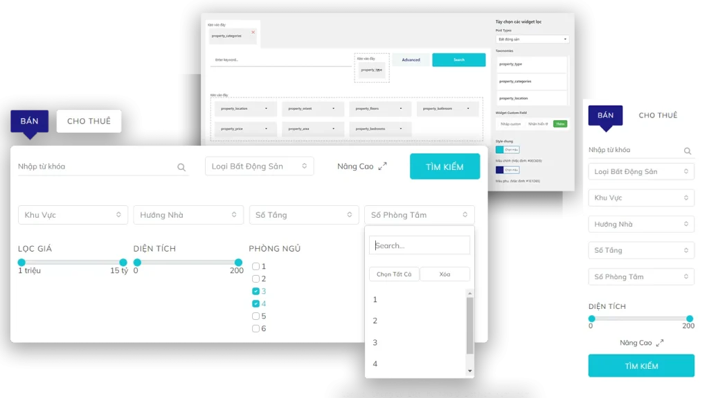Hỗ trợ nhiều loại hiển thị cho widget: select, range(cho custom field), checkbox… Select option cũng có thể chọn nhiều, clear đã chọn…