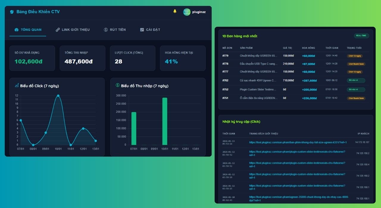 Tất cả dữ liệu được xử lý chính xác, minh bạch và theo thời gian thực, giúp chủ website tập trung phát triển sản phẩm và mở rộng thị trường, trong khi hệ thống Affiliate vẫn vận hành ổn định và hiệu quả.