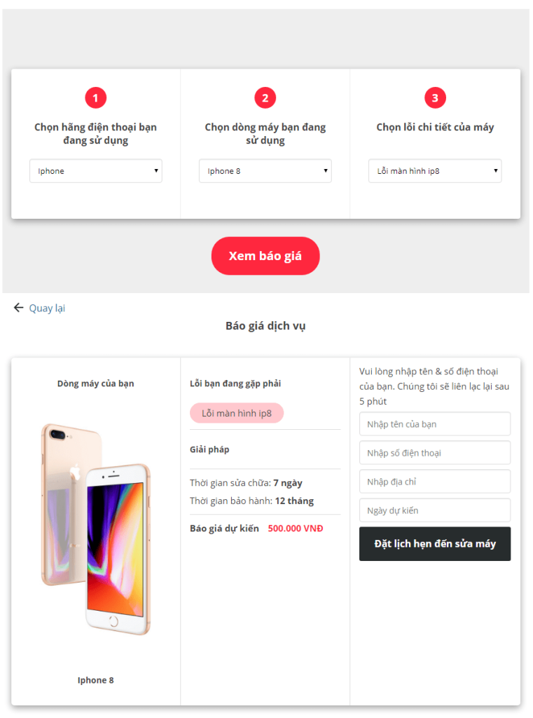 Plugin báo giá dịch vụ sửa chữa thiết bị giúp cho khách hàng biết được phí chính xác hoặc phí dự kiến mà khách hàng phải trả cho nhu cầu của họ. Thuận tiện hơn để tiếp cận khách hàng. Đối với các của hàng sẽ bớt đi thời gian nghe máy và báo giá cho khách.