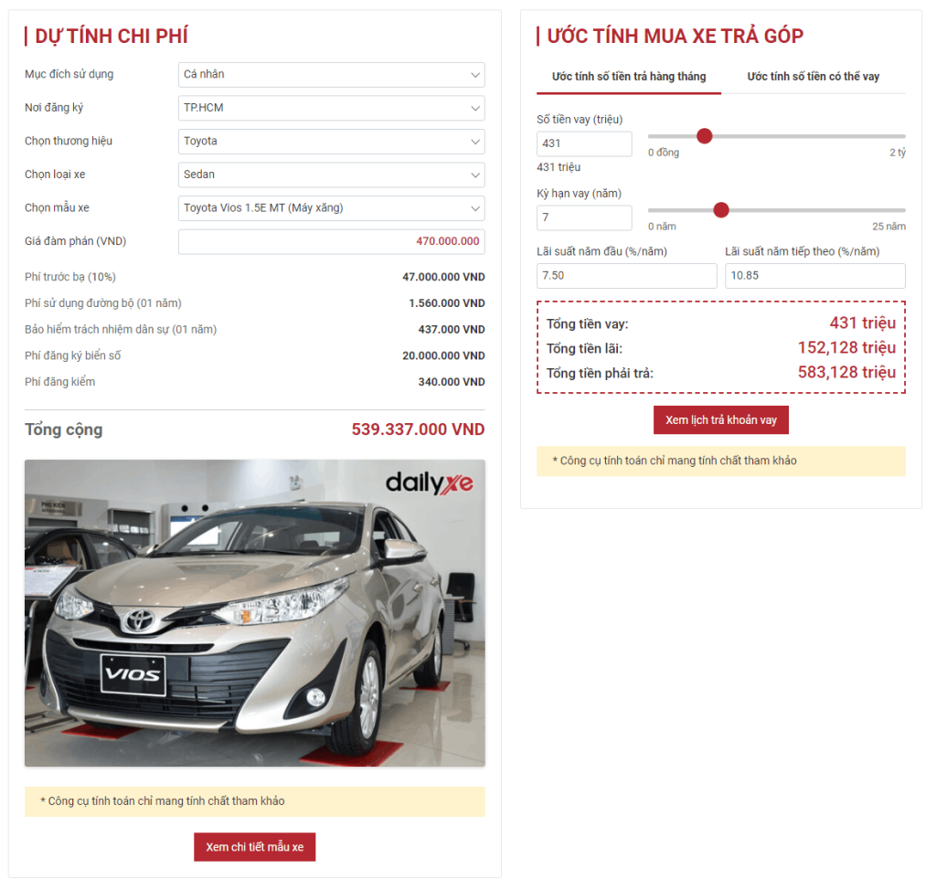 Plugin dự toán chi phí mua xe oto, tính toán thời gian trả góp và tính toán số tiền có thể vay ngân hàng qua thu nhập