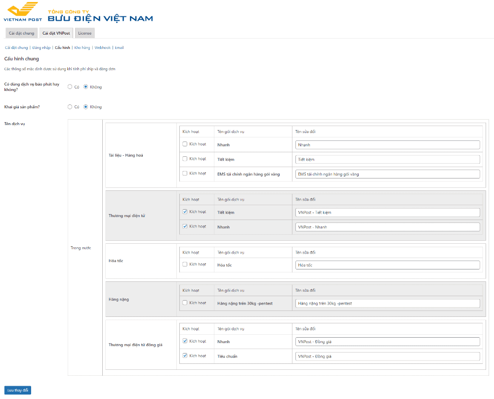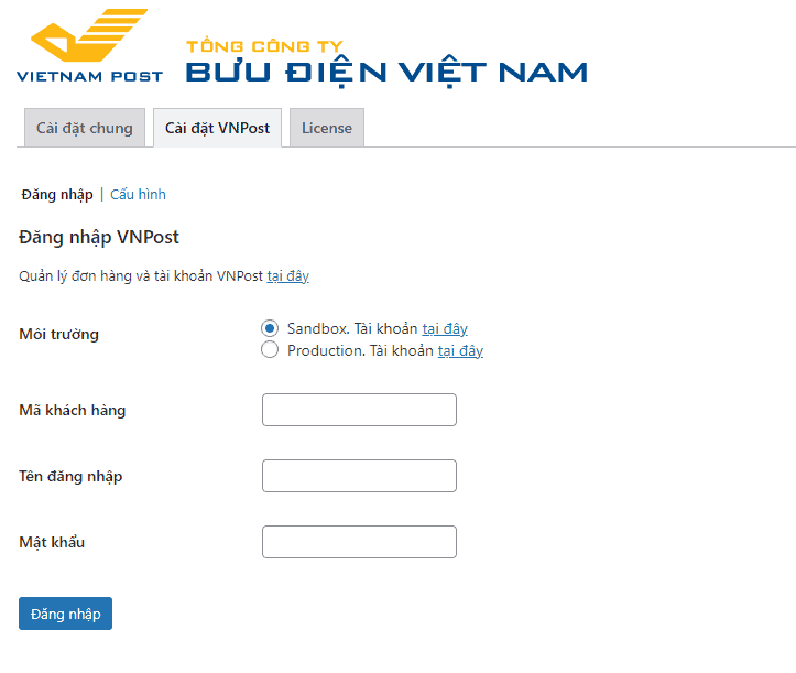 Cài đặt chung của VNPost