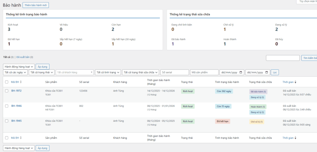 Plugin Quản Lý Lắp Đặt và Bảo Hành Toàn Diện Cho WordPress