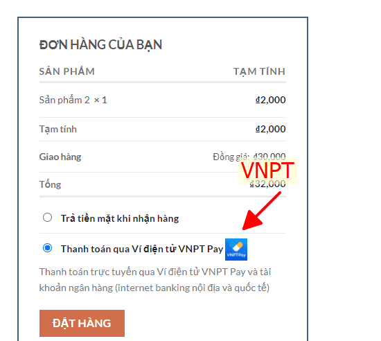 Phương thức thanh toán VNPTPay trong trang checkout