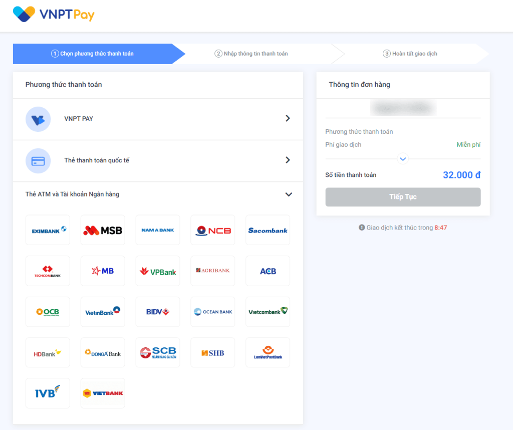 Khi khách chọn thanh toán qua VNPTPay, hệ thống sẽ chuyển qua sang bên VNPTPay để tiến hành thanh toán. Website sẽ không lưu bất kỳ thông tin tài khoản vnpt nào của khách nên sẽ an toàn tuyệt đối khi sử dụng.