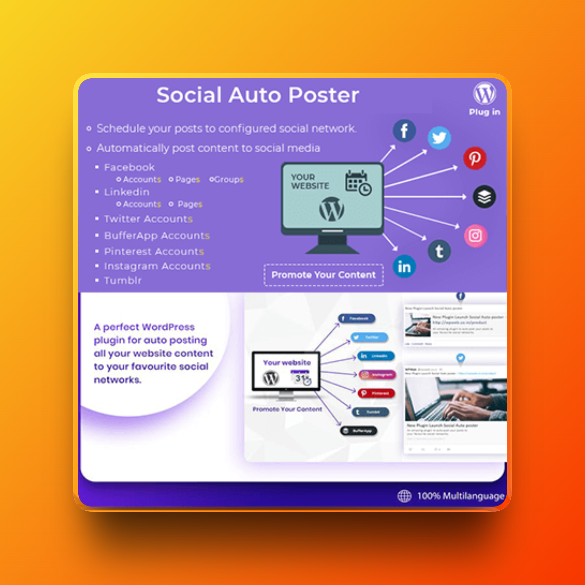 Social Auto Poster chính là Social Media Manager tự động cho website WordPress của bạn: