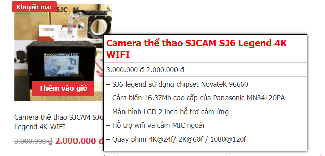 Bao gồm tiêu đề, giá và mô tả ngắn. Bạn hoàn toàn có thể xóa bỏ hoặc thêm các nội dung khác vào phần này bằng cách hook vào action devvn_tooltip_desc